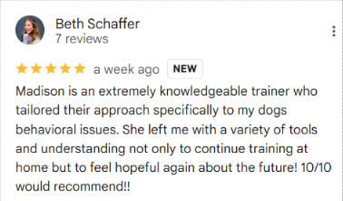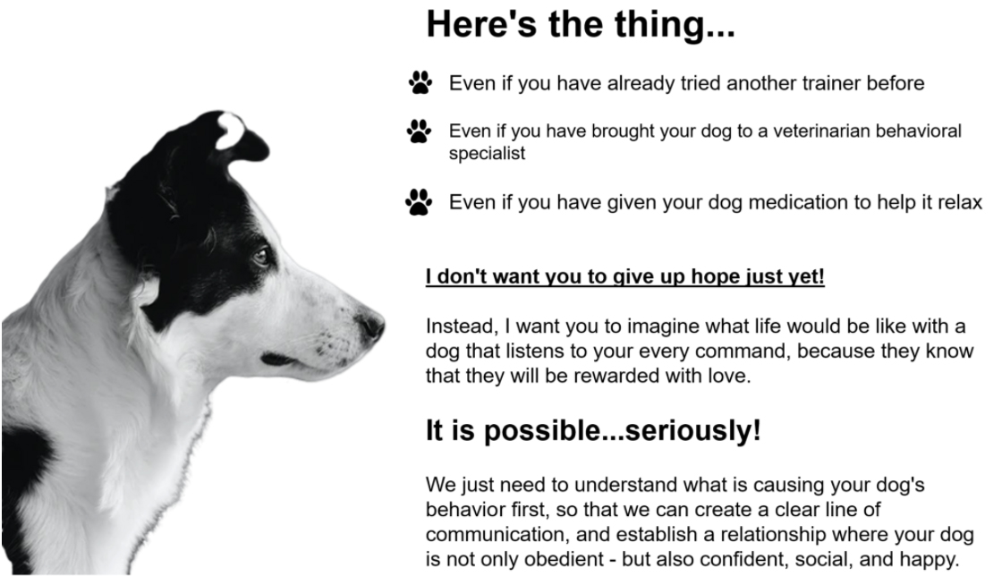 We will share our findings of why or what is causing your dog's problematic or unwanted behavior.