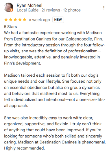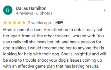 First, we aren't like any other dog training or dog behavior business. Our programs are completely customized based on your dog's current situation, and your relationship/behavior goals with them. We don't train every dog the same because not every dog is the same, and that's the beauty of it!